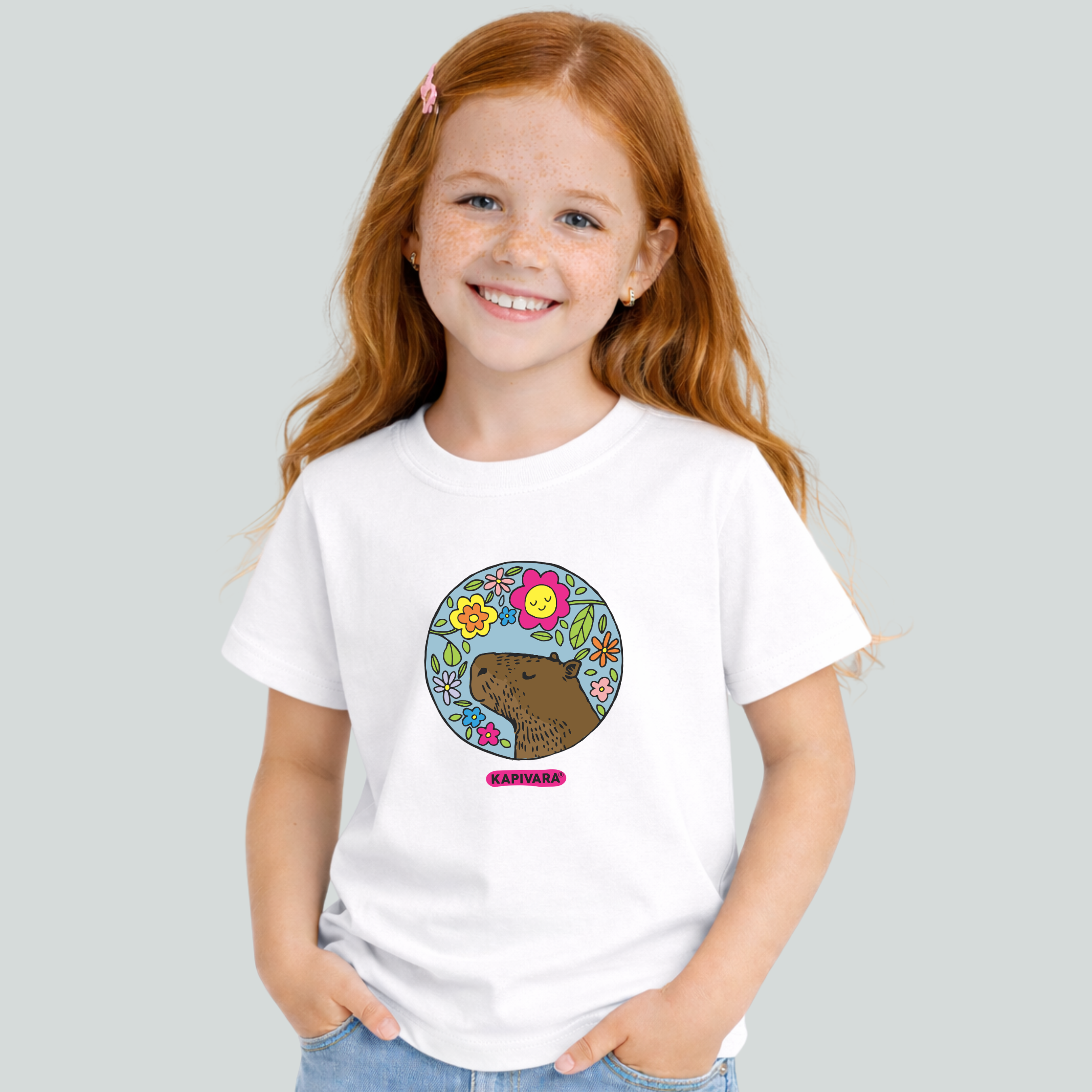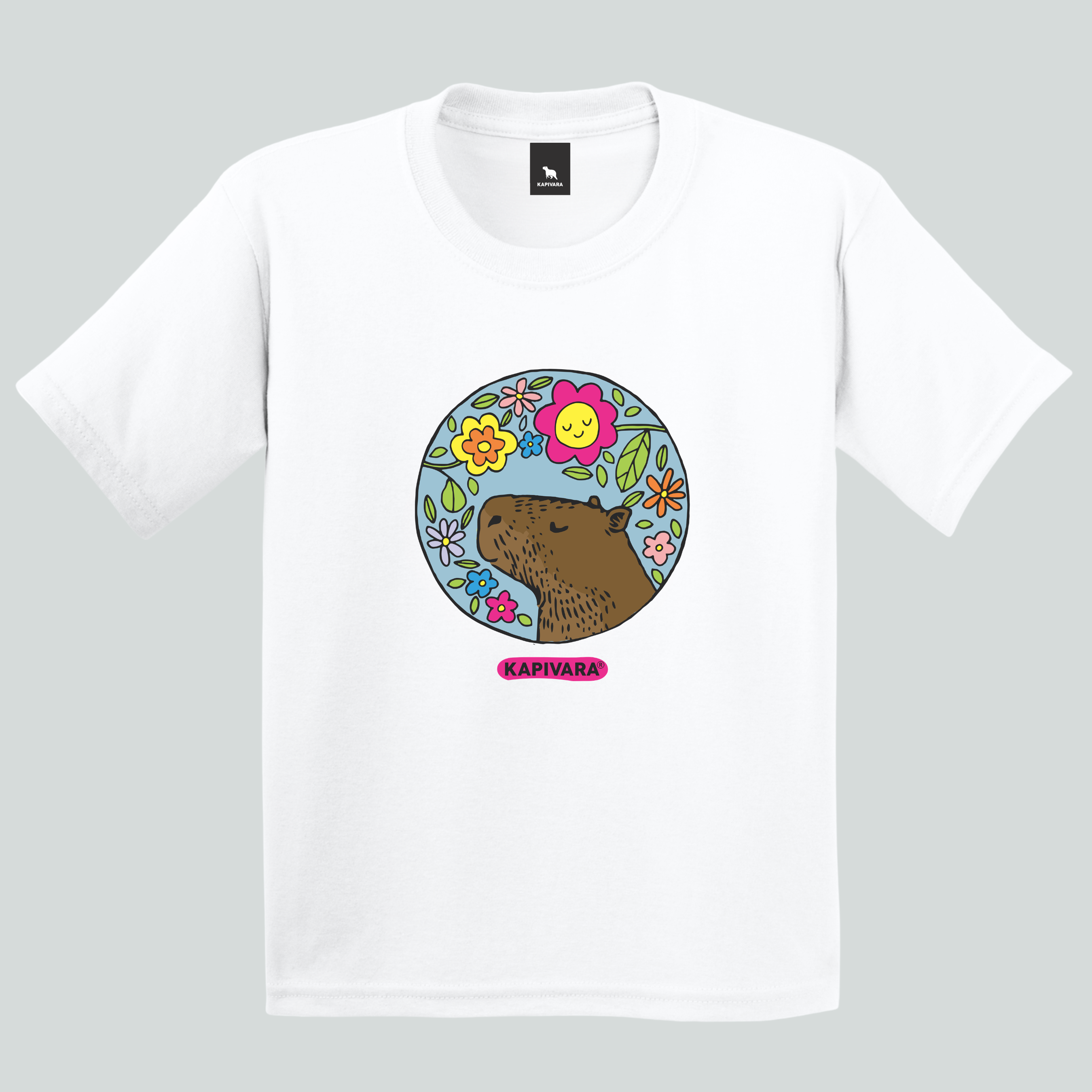 Camiseta Infantil Capivara Flores Coloridas Delicada